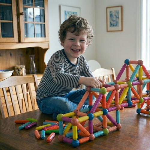 El sistema de construcción magnética desarrolla el pensamiento lógico y la motricidad fina, atrapando su atención por horas sin necesidad de Wifi ni baterías